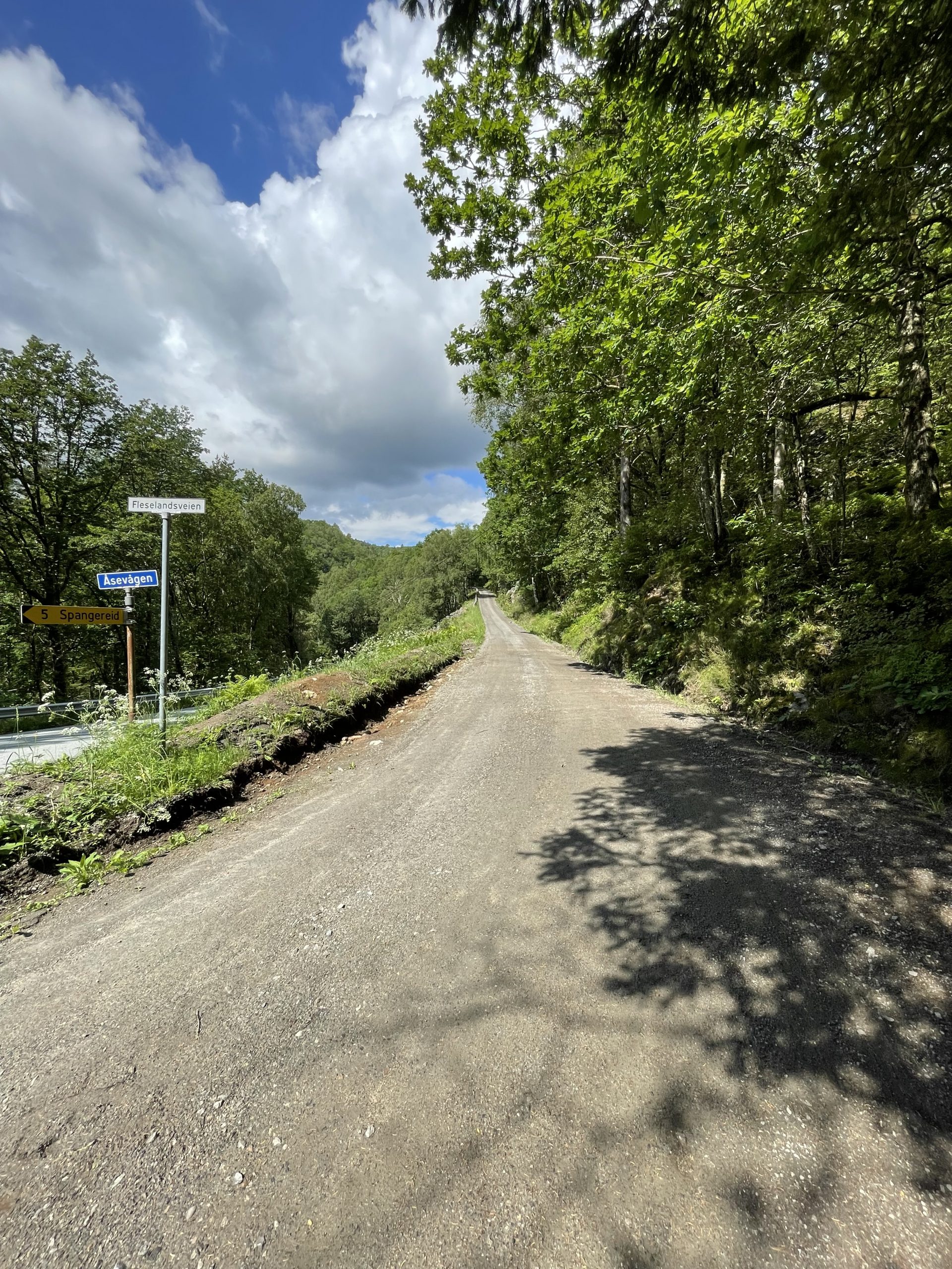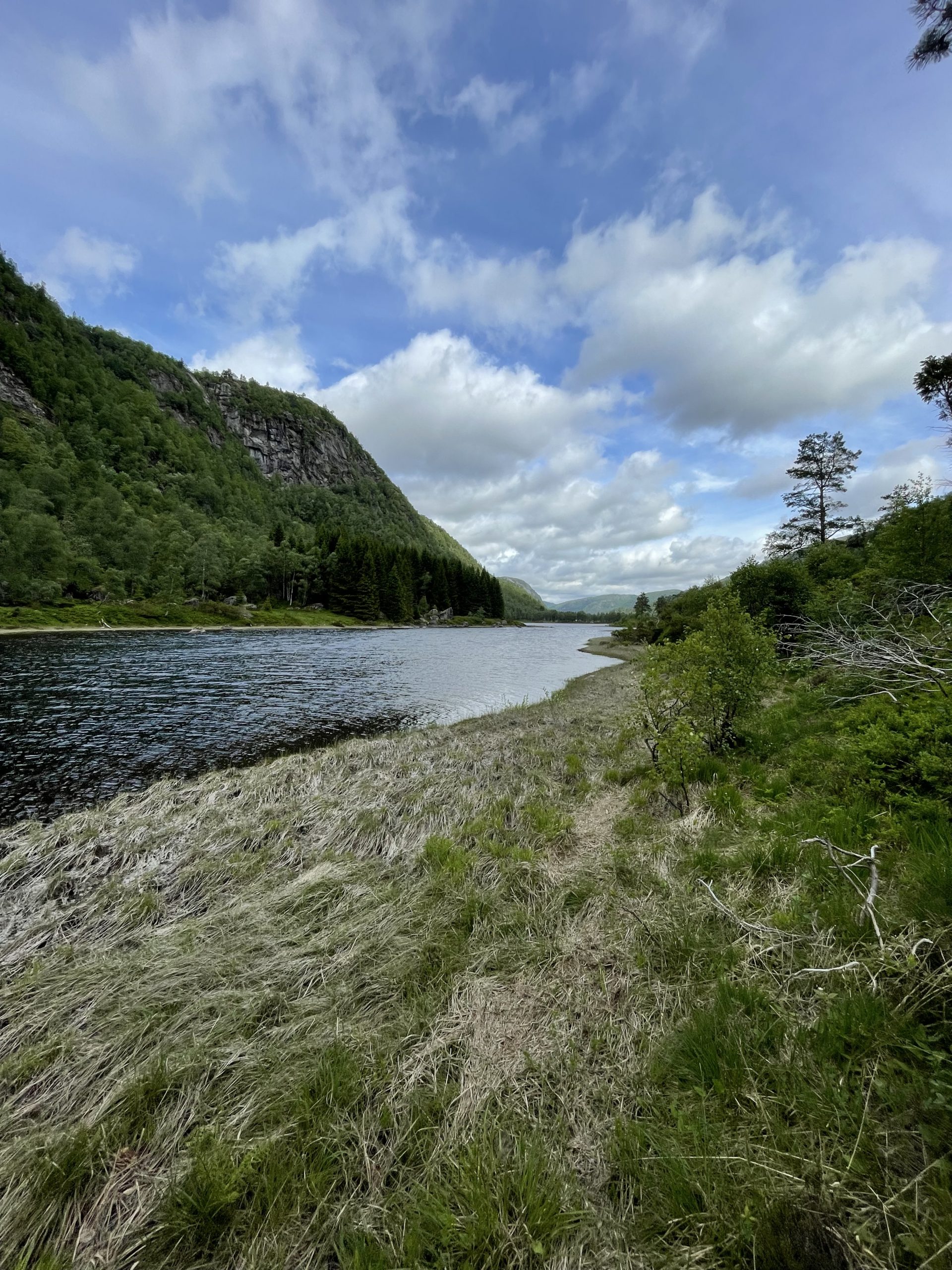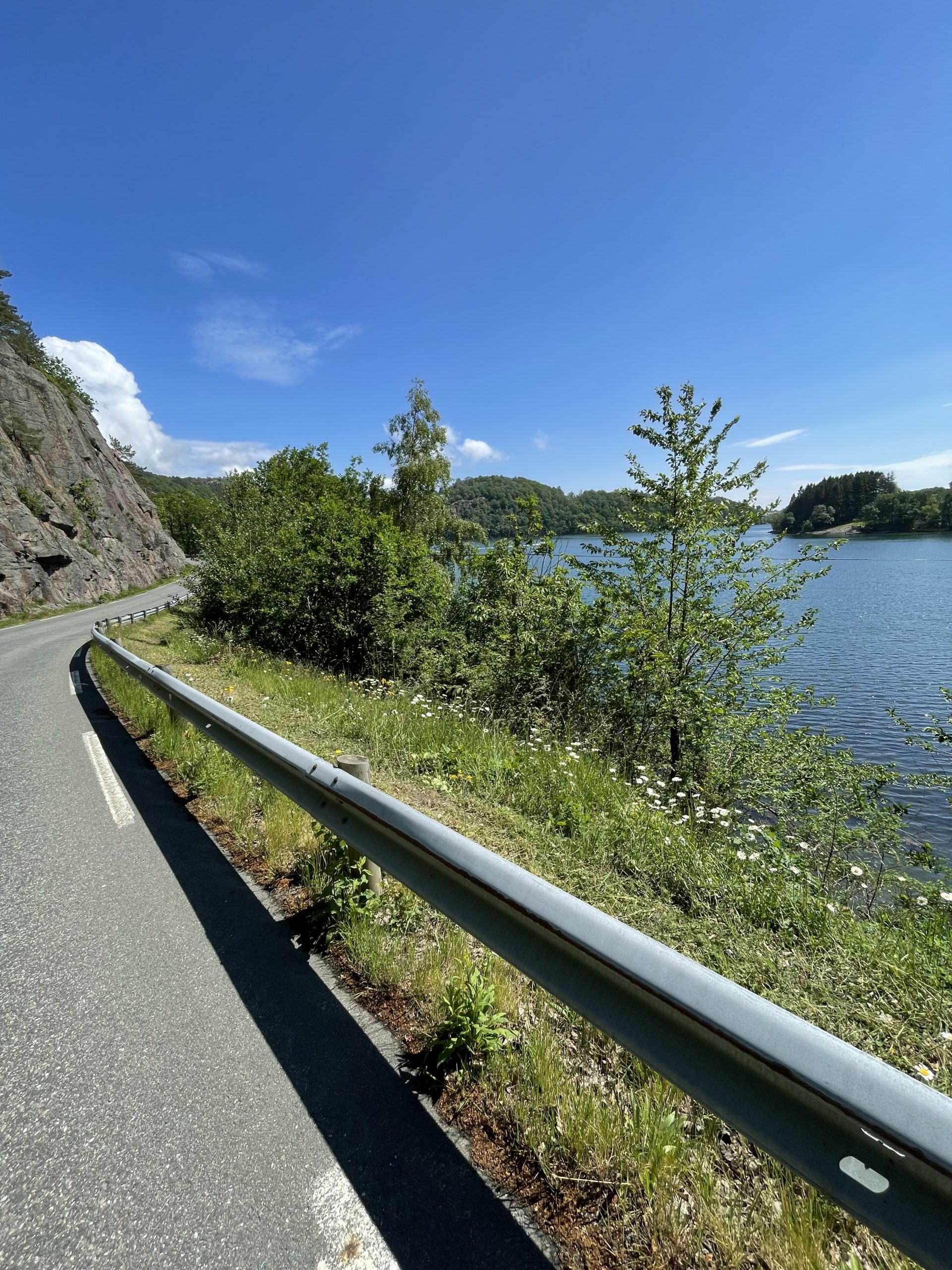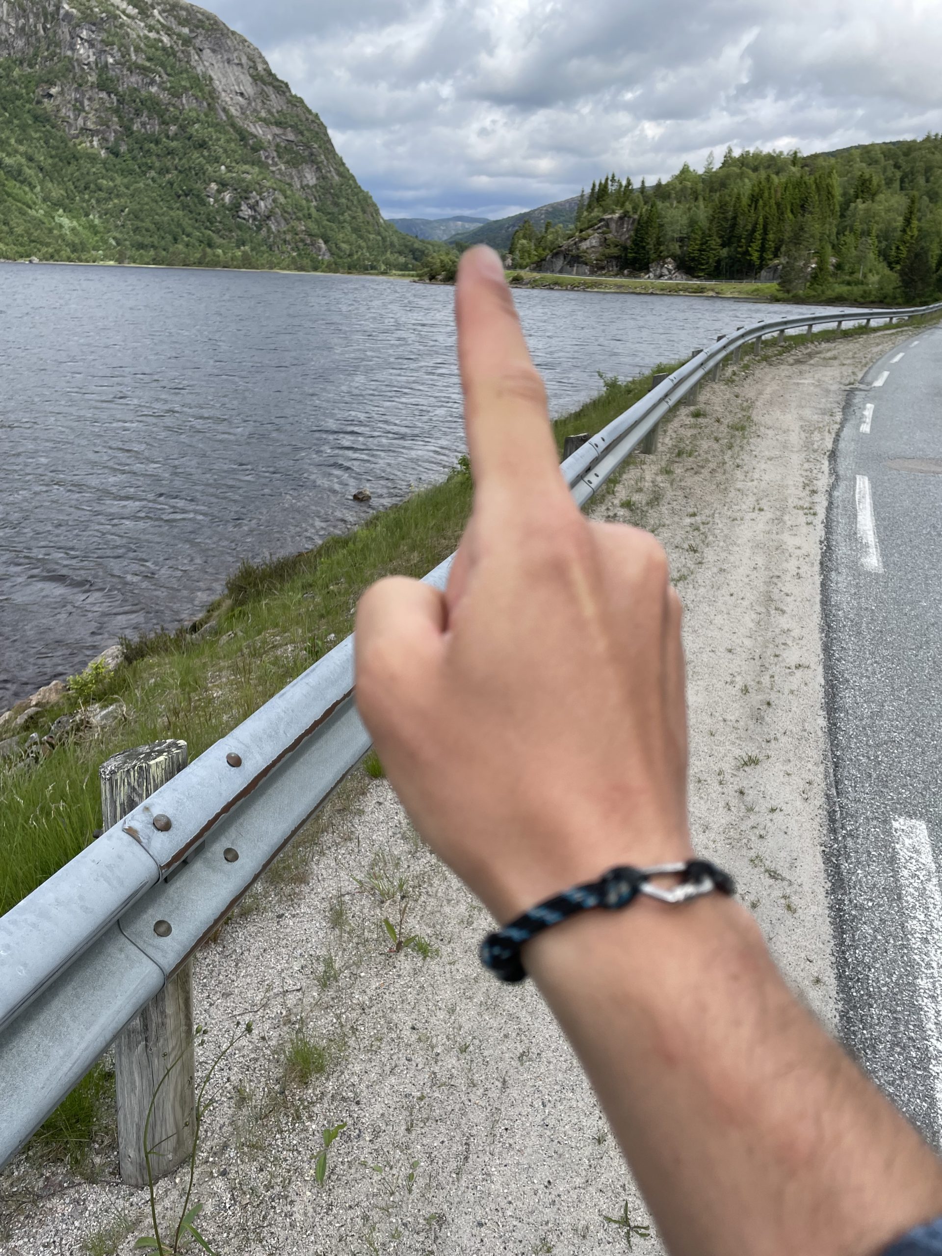 Aber jetzt gibt’s kein zurück mehr (und Ich will auch keins). Los geht’s, gen Norden! Der Weg führt mich zuerst über Straßen dann über Wege dann über Pfade und dann… frei Schnauze! Die Route geht über Fleseland, vorbei am Trælandsvatnet, Richtung Lyngdal, diesmal bei schönstem Wetter.
