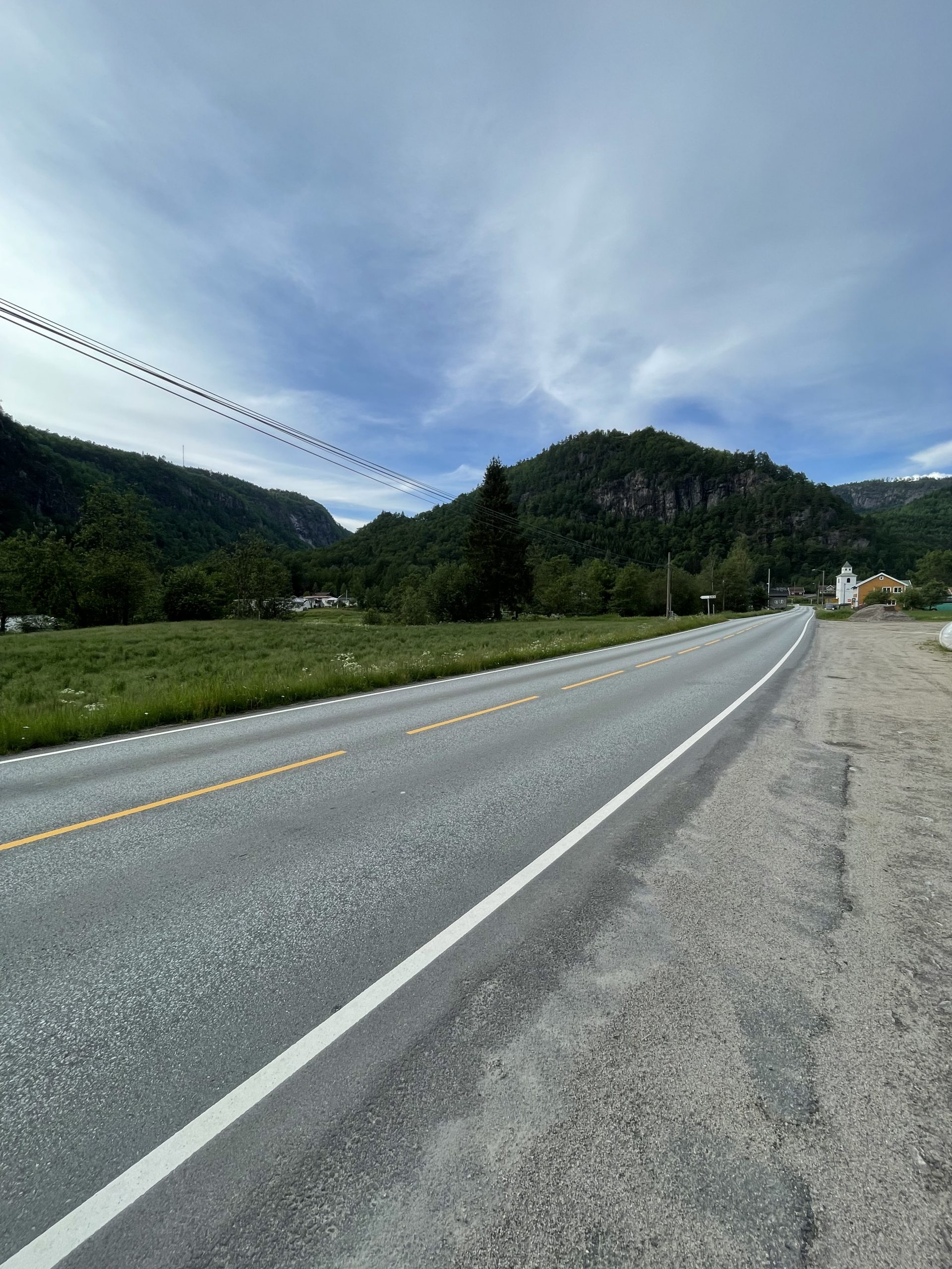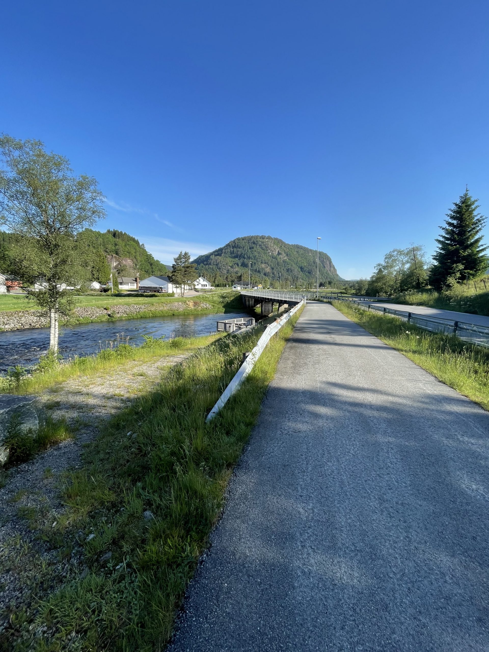Wer mich kennt, weiß dass ich für mein Leben gerne Langschläfer bin, aber heute morgen lief das ein bisschen anders ab. Um 6.30Uhr war ich schon wach, aber eher unfreiwillig. Wenn die Sonne schon morgens Vollgas gibt, wird das Zelt mal ganz schnell zur Sauna. Da kann ich auch genauso gut gleich aufstehen, meine Sachen packen und n frühen Start hinlegen! Gesagt, getan ging die Reise für heute erstmal wieder über Straßen weiter. Auf dem Weg raus aus Birkeland war ich dann wohl erstmal eine früh morgendliche Attraktion, da jeder Norweger erstmal wissen wollte was ich denn vor hab. Aber ich steh ja gerne rede und Antwort wenn jemand interessiert ist an der Sache und zudem kann ich dabei noch mein Kindergarten-Norwegisch ausprobieren! Funktioniert zwar eher schlecht als recht aber hey! Übung macht den Meister!
