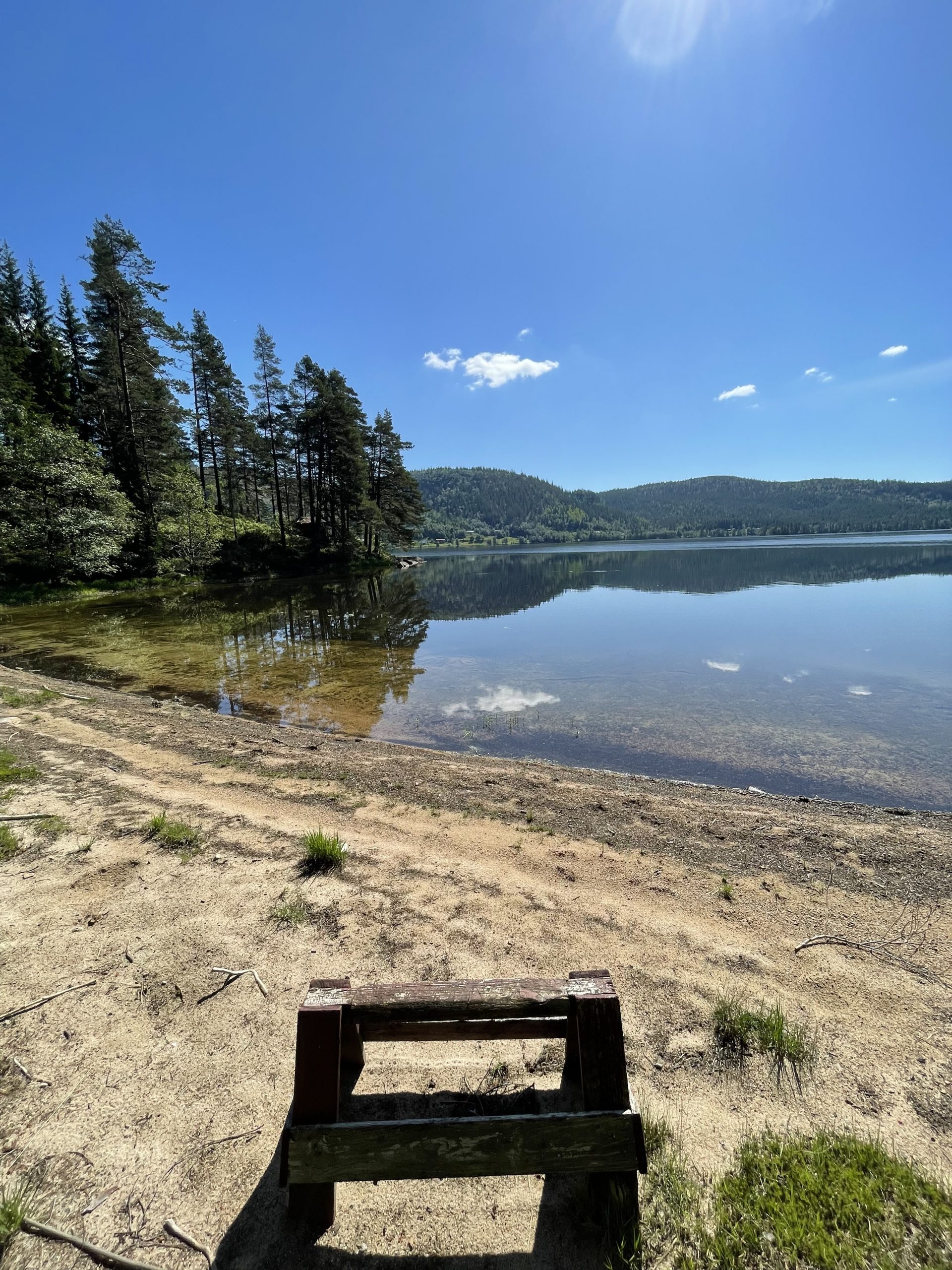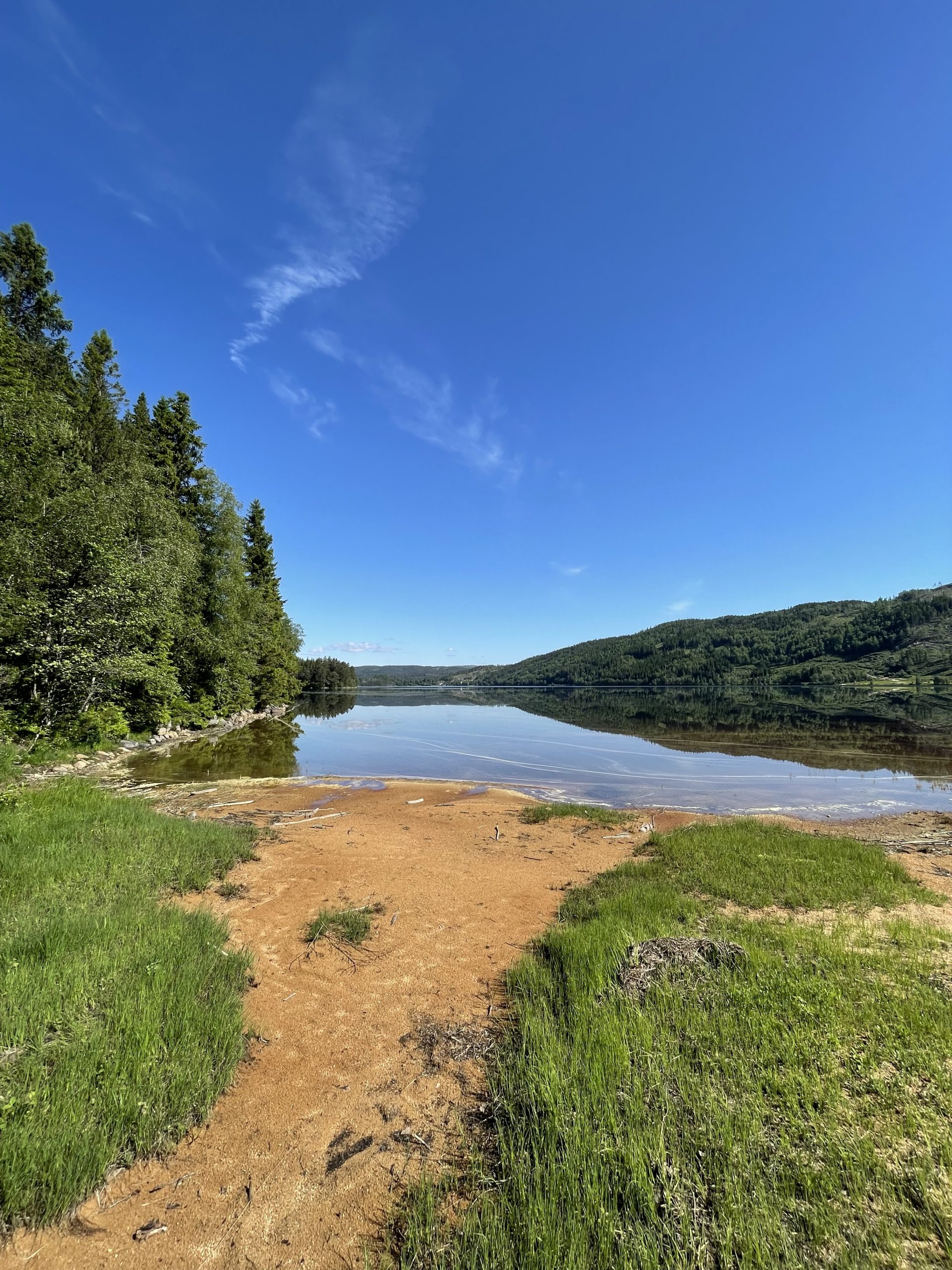 Begonnen hat der Tag aber eher mit einem Tief, da es mir unglaublich schwer fiel ins Laufen reinzukommen. Der Rucksack mit seinen 20kg tut seins auch dazu. Nach 16km war ich kurz vorm Zelt aufschlagen und es gut sein lassen, aber dann hat es irgendwie Klick gemacht und die weiteren Kilometer sind nur so dahin geschmolzen. Manchmal muss man eben die Zähne zusammen beißen, Kopf aus und immer weiter. Angekommen in Kvås habe ich mich dann mit ner Cola und 2 Äpfeln selbst belohnt und dann kam als ich gerade aus der kleinen Butik draußen war noch die Besitzerin hinter mir her und schenkt mir eine Zimtschnecke! Das hat mir den Abend heute nochmal mehr „versüßt“!