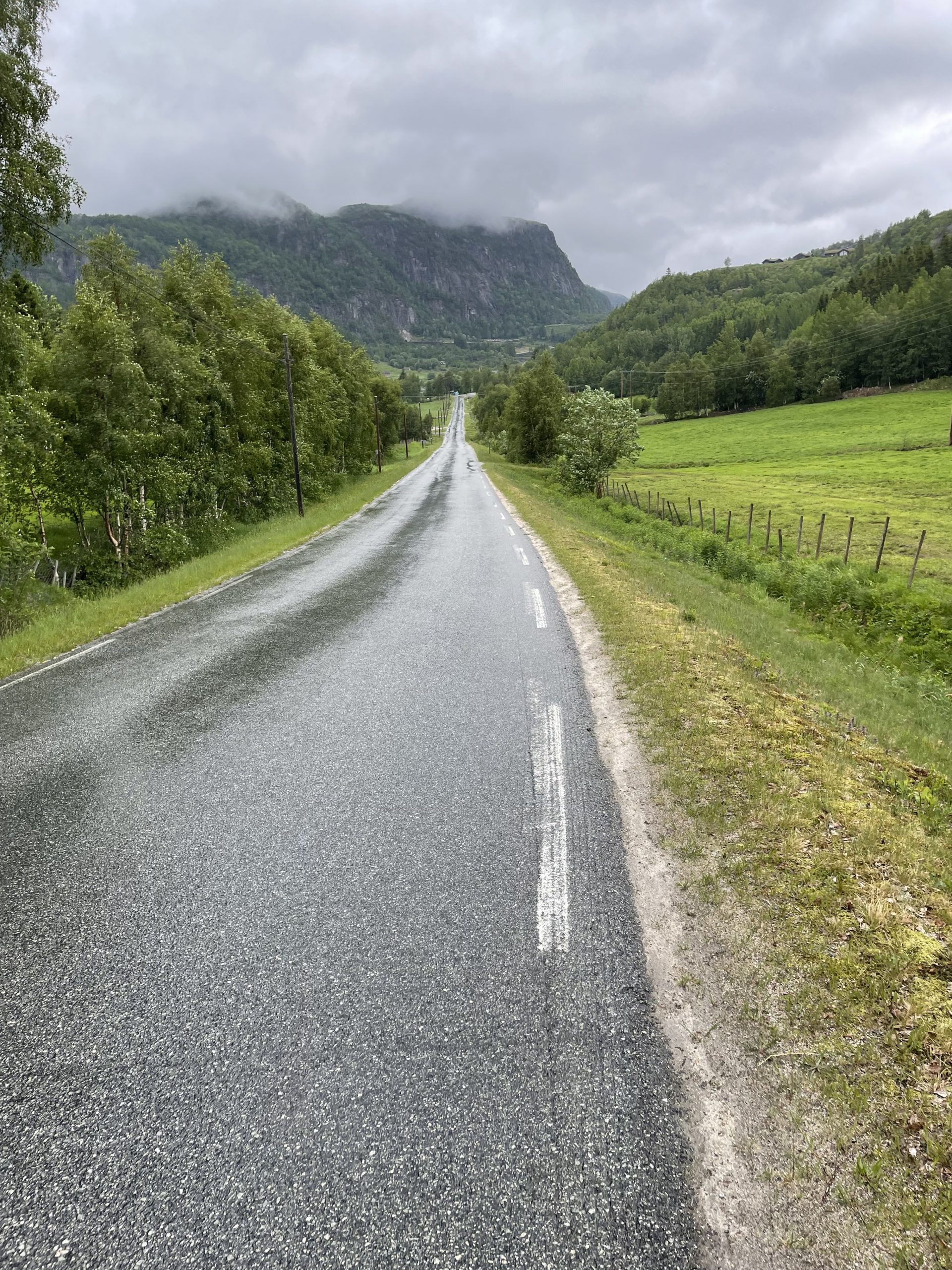 Die letzten Kilometer dieser Etappe waren mal wieder bestückt mit reinen Straßenkilometern und gegen Ende auch noch mit ordentlichen Regen gepaart… Ich würde es mal Zubringer zum Fjell bezeichnen, denn die nächste Etappe führt mich dann endlich in die ersehnten Berge.