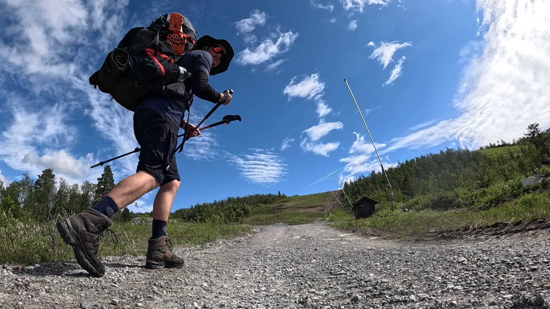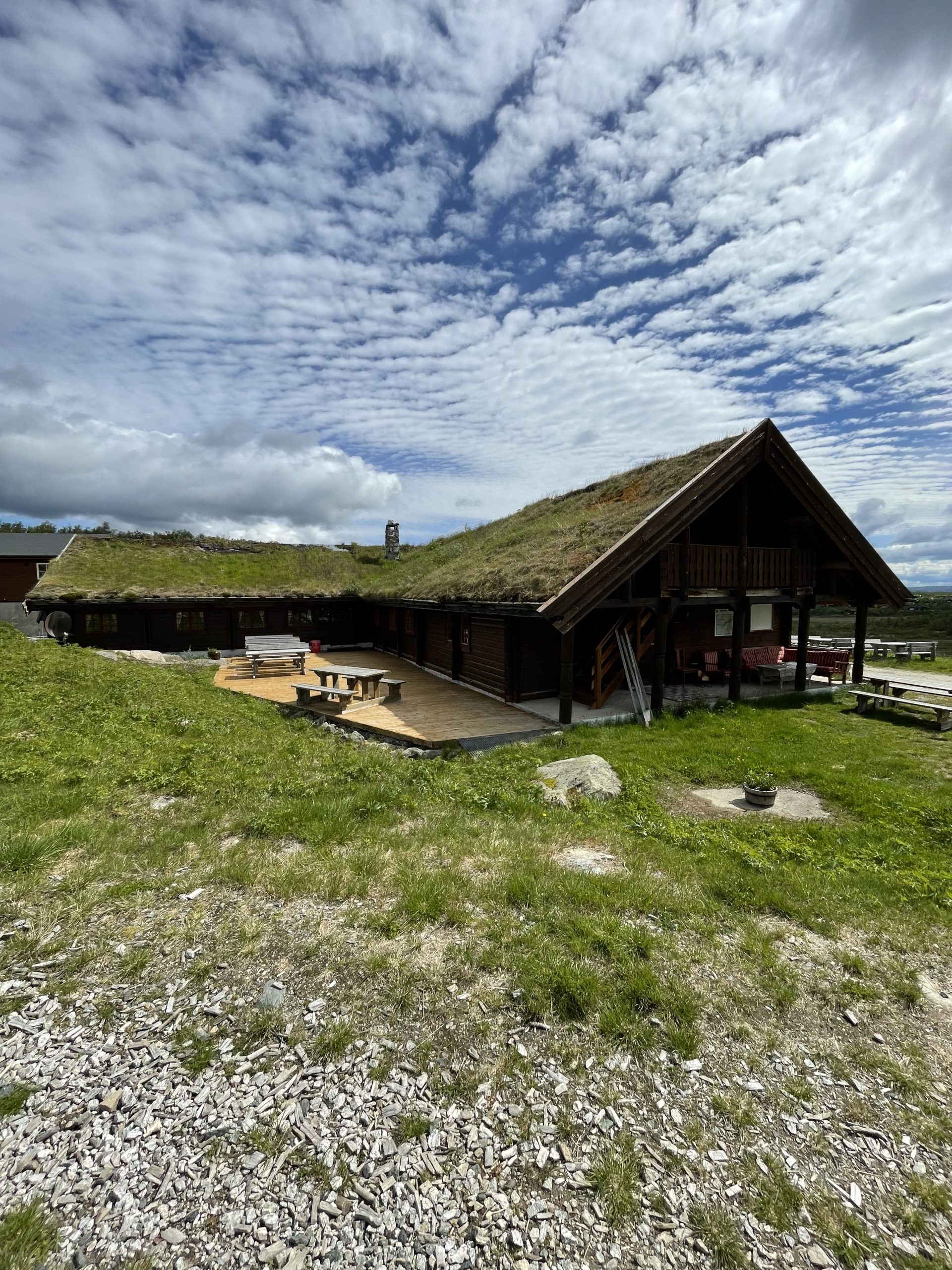 Wirklich los ging es dann erst gegen 13Uhr, als dann endlich mal ein Zeitraum ohne Regen dabei war und sich sogar auch die Sonne hat blicken lassen. Es standen heute ja aber auch nur 20km auf dem Plan. Trotz des späten Start gut machbar. Der Weg durchs Fjell war gewohnt anstrengend und es waren auch noch viele matschige Passagen mit dabei, das zieht ganz schön von der Energie. Die Aussicht auf eine schöne Hütte am Ende hat aber geholfen die Kilometer durchzupowern!