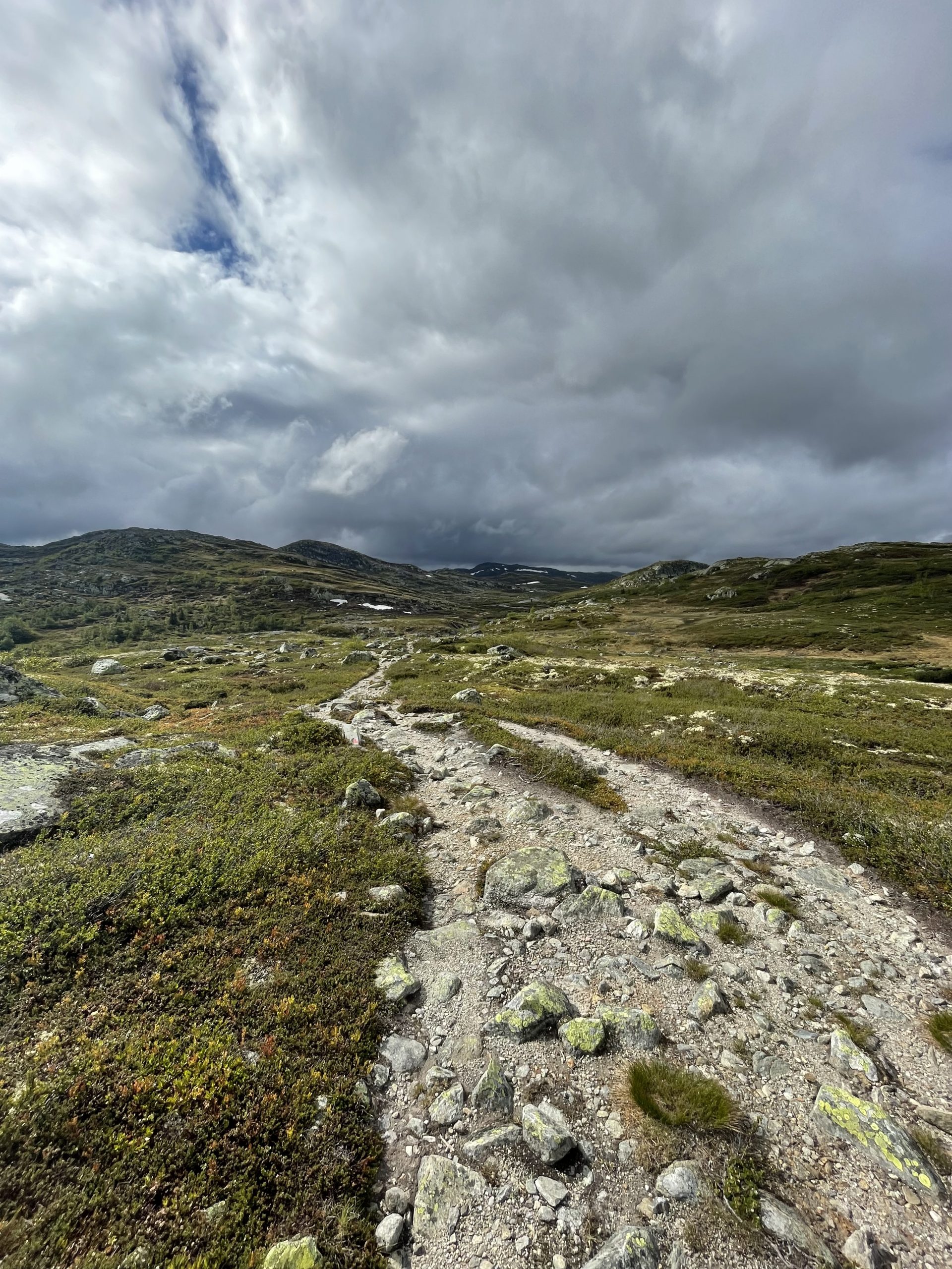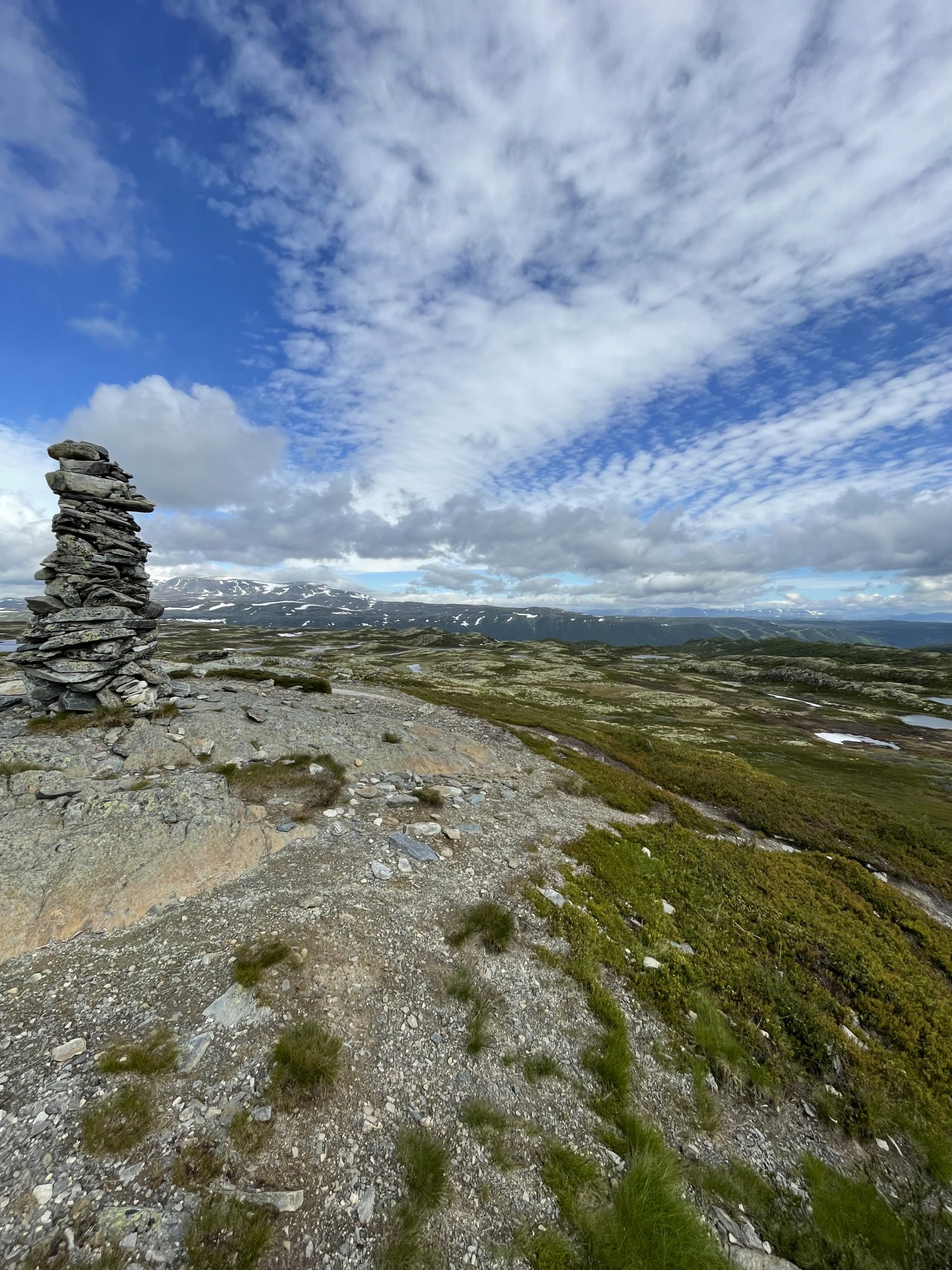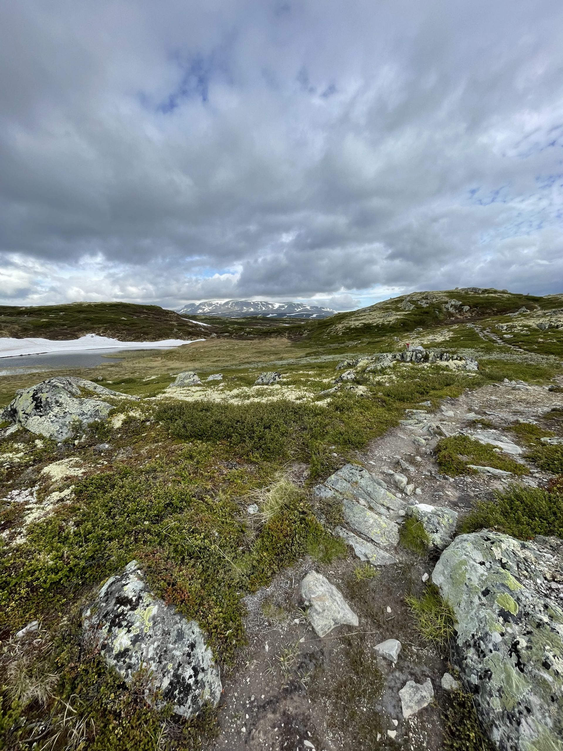Der Weg ist heute gut zu laufen und es stehen 7 Sonnen am Himmel. Ein wahrer Sommertag in Norwegens Fjells! Auch wenn es mit dem Wind noch immer recht kühl wird, aber das ist mir fürs Wandern eh lieber. Ich find es fast schon schade, dass auf den Bildern die ich hier poste die Landschaft nie so rüber kommt wie sie ist. Insbesondere die Weite ist nur schwer einzufangen. Aber ich gebe weiterhin mein Bestes!