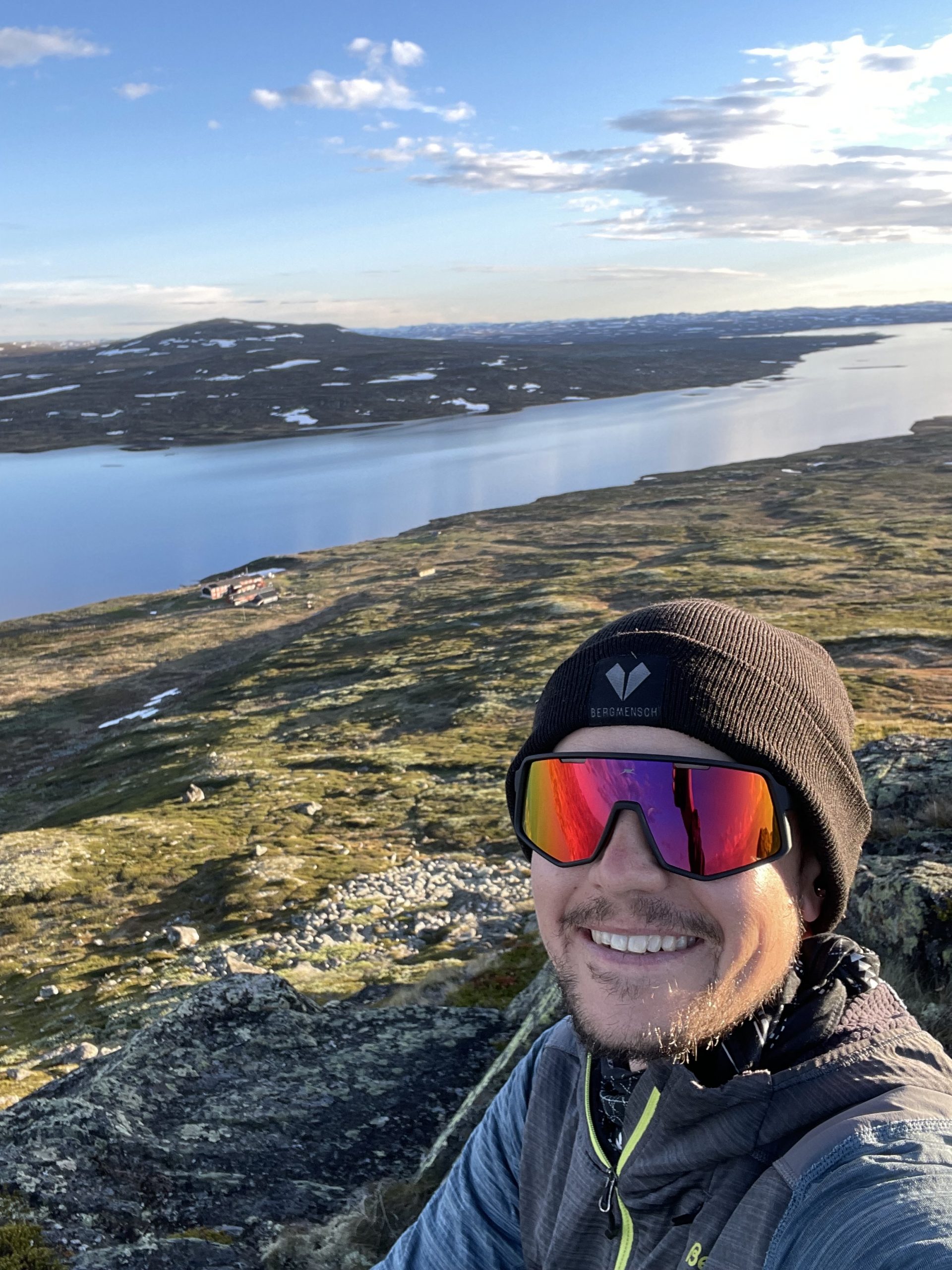 Die Wege hier sind unerwartet gut zu gehen muss ich sagen. Da schon so gut wie aller Schnee geschmolzen ist, hält sich der Sumpf in Grenzen. Klar ist es kein Sonntagswandern, aber es läuft sich wirklich gut. Als Nachtlager gibt es zwei Alternativen. Die Helberghytta, oder noch ein Stück weiter gehen und mein Zelt im Fjell aufstellen. Wegen des doch recht guten Wetters am Abend hab ich mich für das Zelt entschieden und das steht nun wieder in bester Lage mit traumhafter Aussicht!