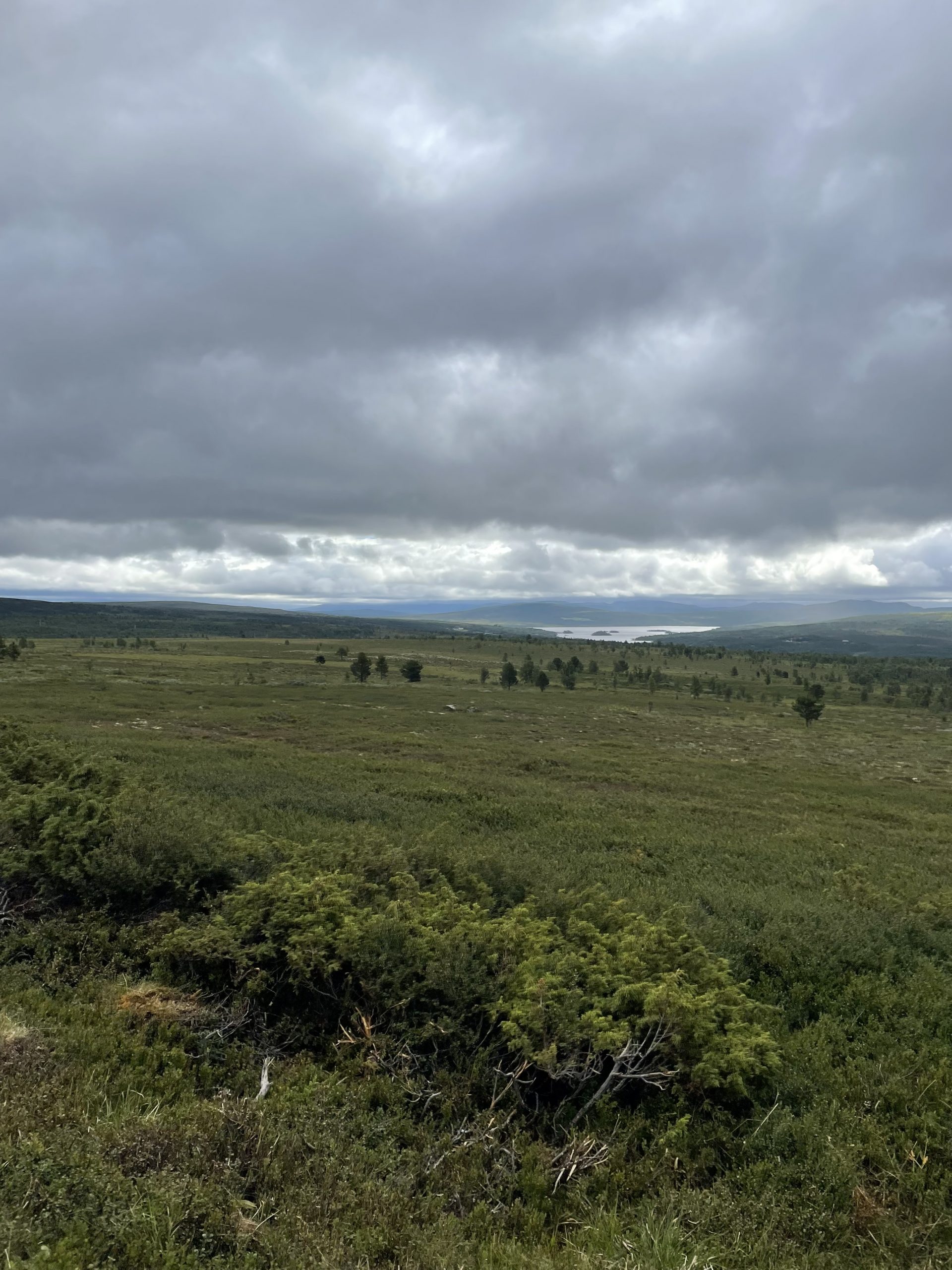 Die Landschaft zeigt sich zunächst weiterhin sehr grün, was an der geringen Höhe in diesem Abschnitt liegt. Als ich dann aber, nahezu direkt, an der schwedischen Grenze entlang wandere, zeigt sich das majestätische Sylangebirge und die Umgebung bekommt einen komplett neuen Charme. Durch riesige Rentiergehege und weite Ebenen führt mich mein weiterer Weg nach Meråker und damit tiefer hinein ins weite Trøndelag.