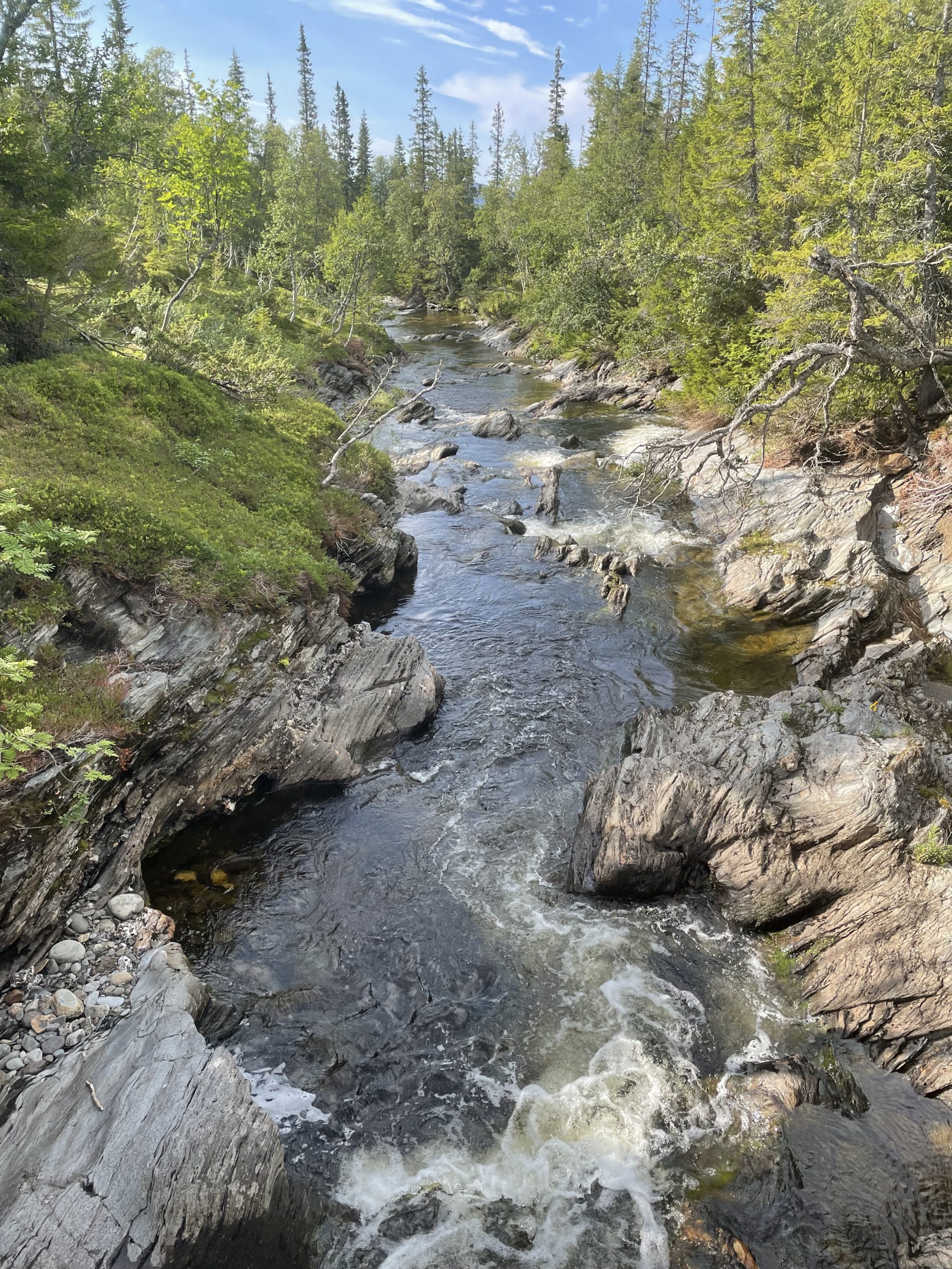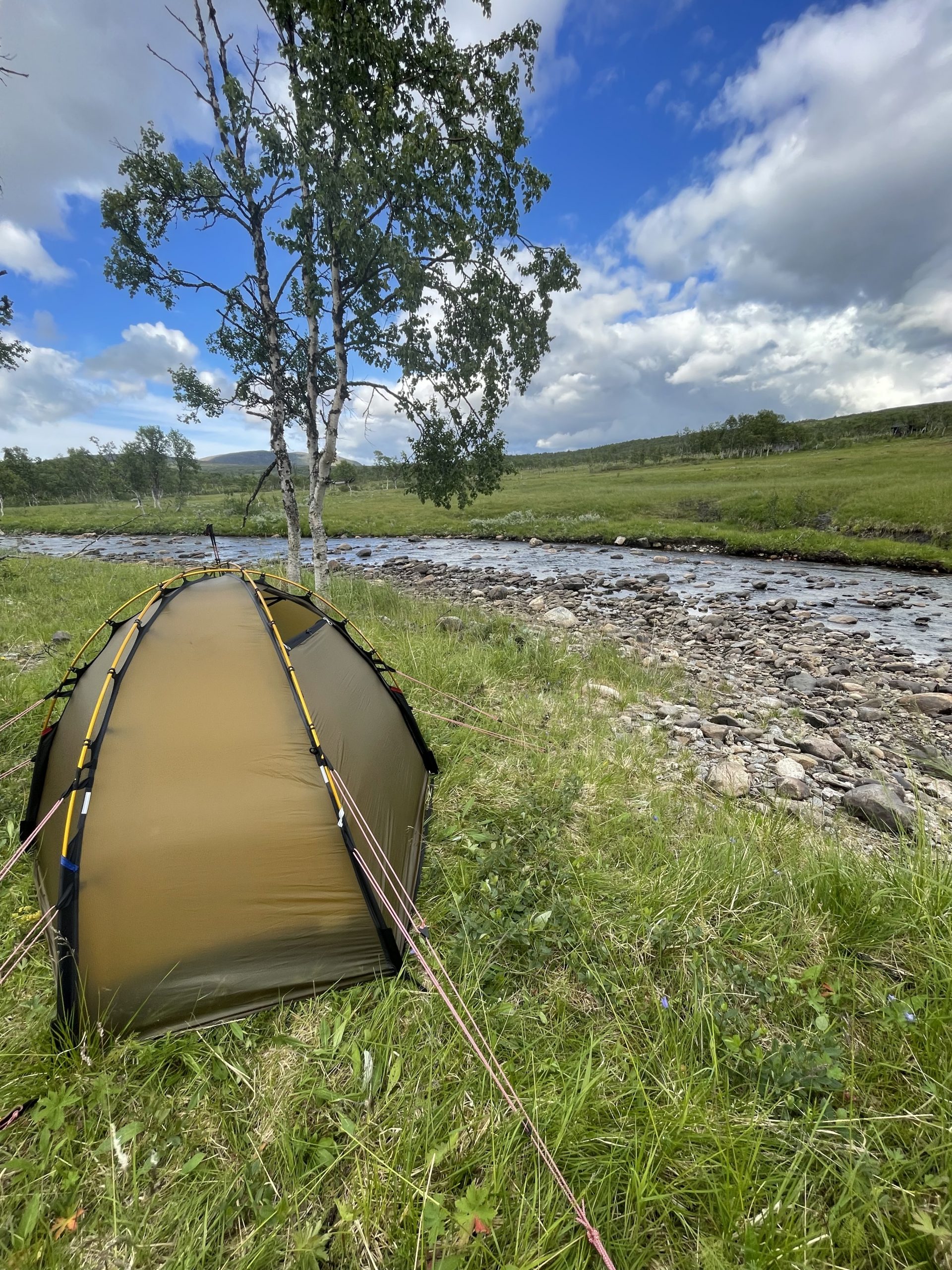 Es wird heutzutage wirklich noch Zeitung gelesen! Beim Check out aus dem Hotel in Røros, kam ich der guten Dame doch bekannt vor als Sie mich mit meinem großen Rucksack sieht. „You are the one from the newspaper?!“. Gab leider keinen Rabatt aufs Zimmer… Aber dennoch ein lustiger Start in den Tag! Nach dem Ruhetag fühl ich mich endlich mal so richtig erholt und das zeigt sich auch beim Laufen! Es geht sich heute einfach super und nach einem kurzen Zwischenstopp im Supermarkt von Glåmos bin ich auch schon gegen 17Uhr mit meinem Wandertag durch! Am Ufer eines kleines Flusses lasse ich mich mit meinem Zelt nieder und richte ein Camp ein. Da bleibt noch viel Zeit den Abend zu genießen! Perfekte Temperaturen und ein leichter Wind, also auch keine schlimme Mückenplage! So lässt sichs doch leben. Jetzt wartet im Naturkühlschrank noch eine Dose „Frittenlunte“ auf mich und dann einfach nur nichts tun. Die freie Zeit und die Ruhe an den Abenden, sind für mich ein ganz wichtiger Teil dieser Reise. An Tagen, an denen es so gut läuft wie heute, könnte ich sicher noch etliche weitere Kilometer rauslaufen, aber das würde nicht dem entsprechen, was ich mir erhoffe… Zeit für mich und für das Verarbeiten der Erlebnisse ist genauso wichtig wie das Gefühl von Fortschritt.